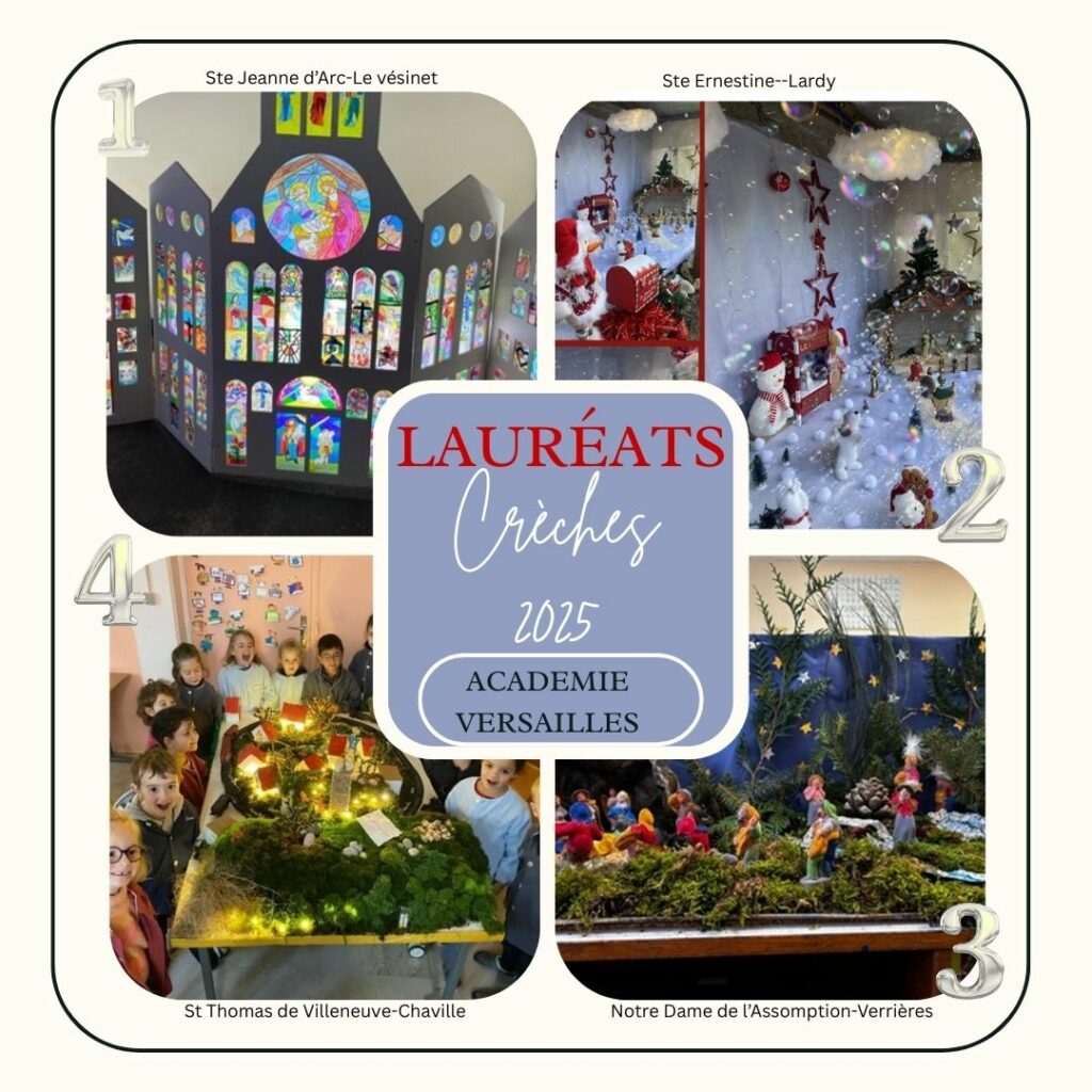 Suite au Concours de Crèches proposé par le Réseau d’animation pastorale de l’Apel, les membres du Conseil d’Administration de l’Apel académique de Versailles se sont réunis le 13/01 dernier pour désigner les gagnants parmi les 28 participants de cette édition 2024.Voici les résultats :1er prix : St Thomas de Villeneuve à Chaville2ème prix : St Spire Sénart à St-Pierre-du-Perray3ème prix : Ste Clotilde à Issy-les-Moulineaux4ème prix : Ste Jeanne d’Arc au VésinetUn grand bravo 👏à nos gagnants et un grand merci aux 28 APEL d’établissements pour leurs participations à ce beau concours !